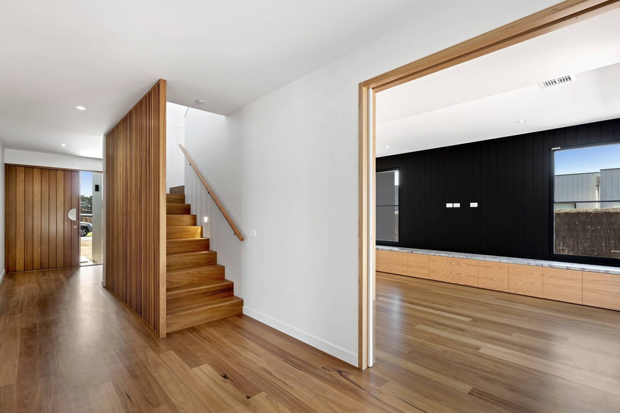 Oak: Oak provides a modern look and is available in several species and grades, depending on how many features you wish to see in the timber. Tasmanian Oak creates a pleasant warmth to your home and American and French Oaks are very sophisticated and luxe.