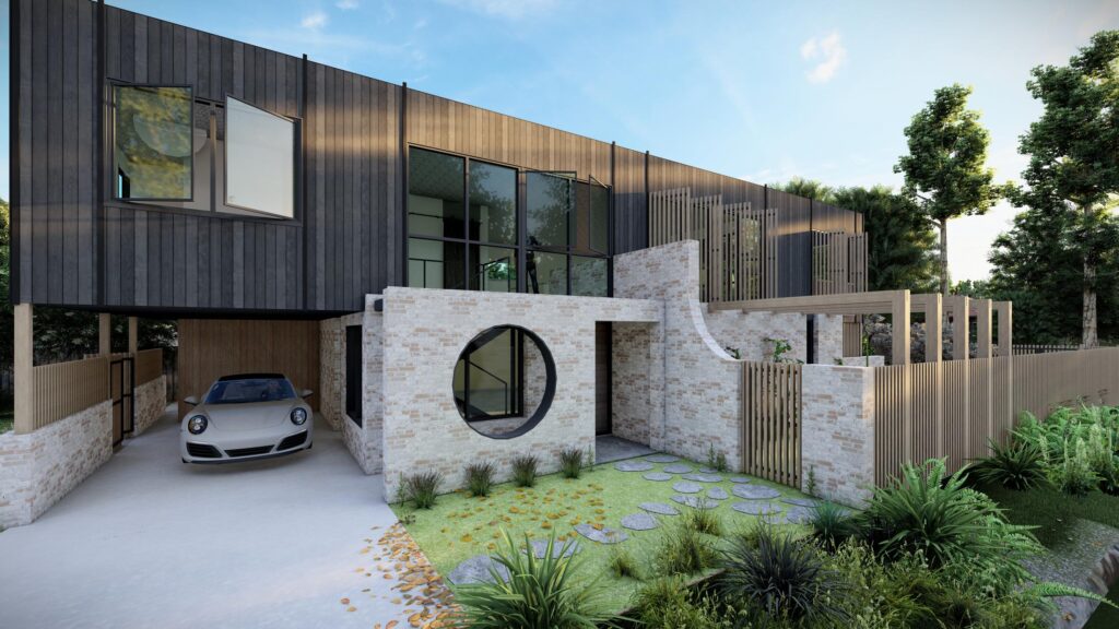 - Construction materials – highly architectural homes tend to utilise more elaborate and expensive construction materials, such as steel, concrete, glass, natural stone and high-end cladding materials, all of which cost more per m2 than basic construction materials. Highly architectural homes also tend to use non standard sizes for things like windows, which means more customisation, complexity and cost.